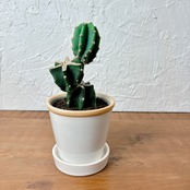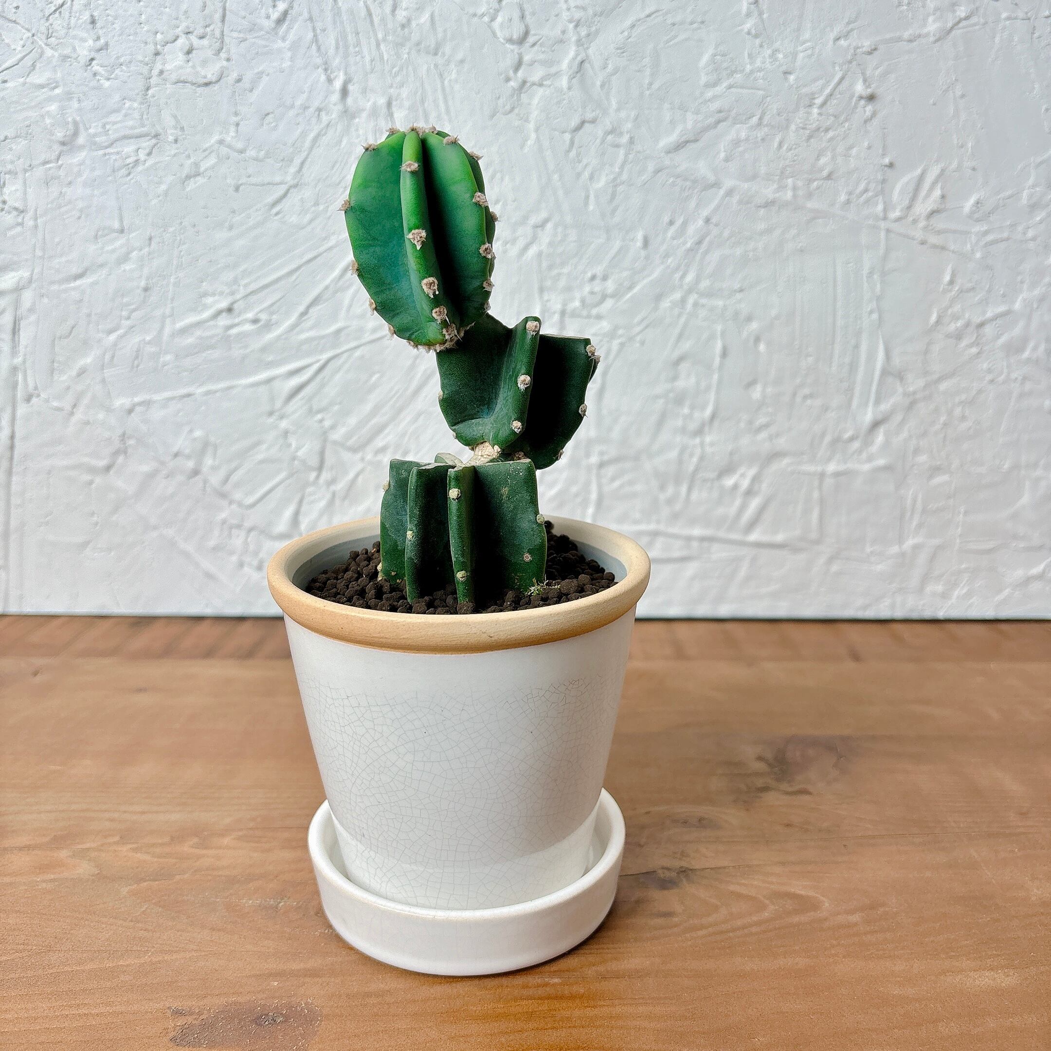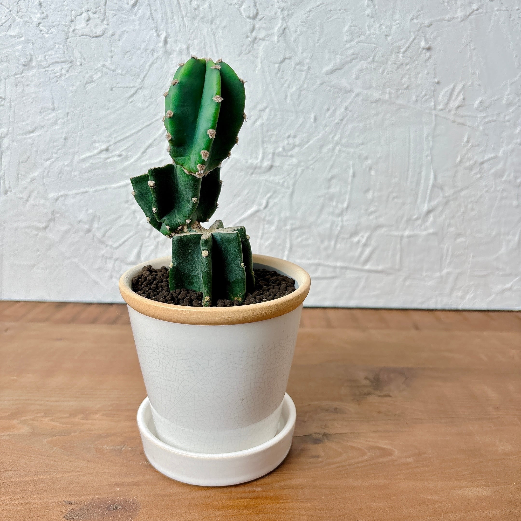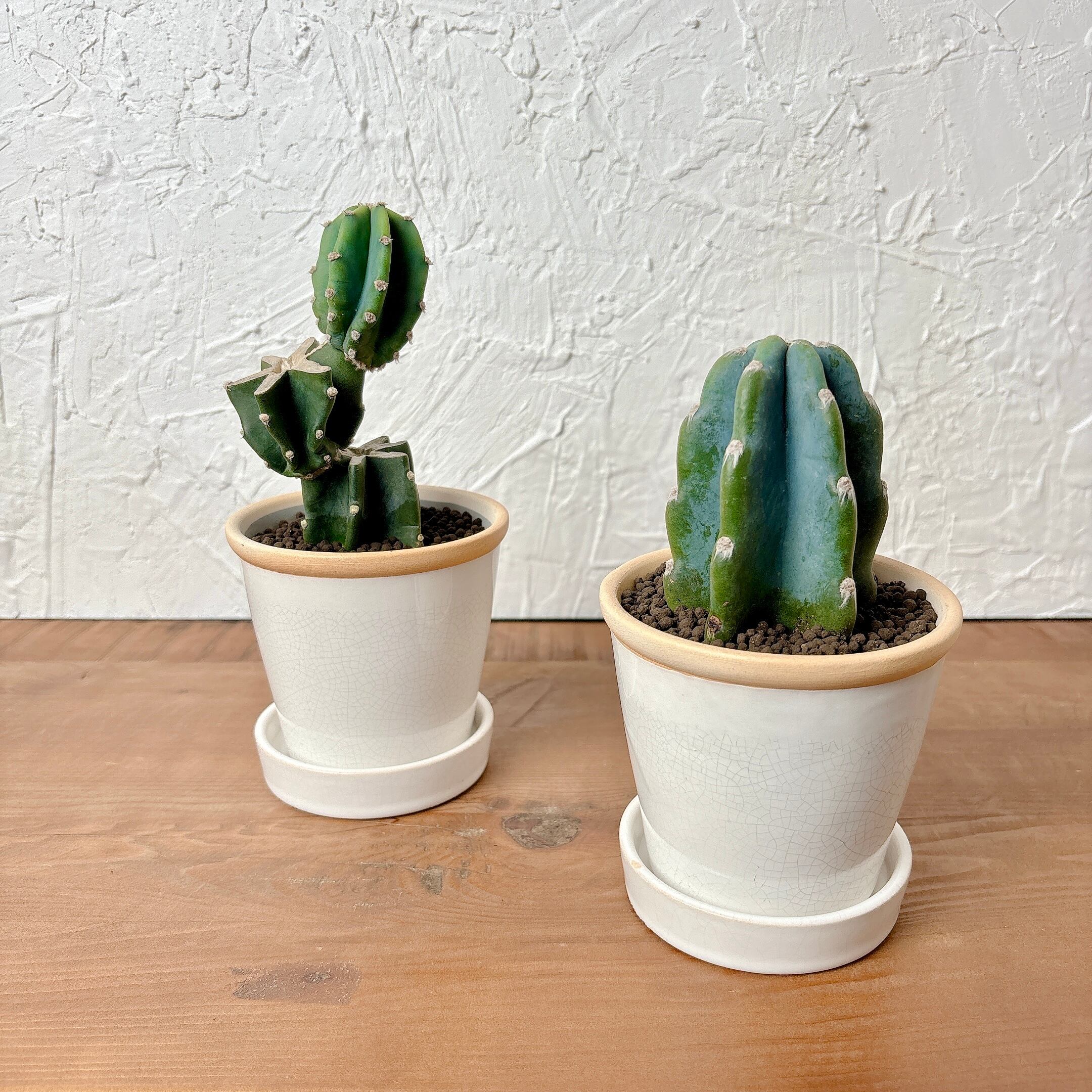 サボテンの緑が映えるシンプルな白陶器鉢を合わせました