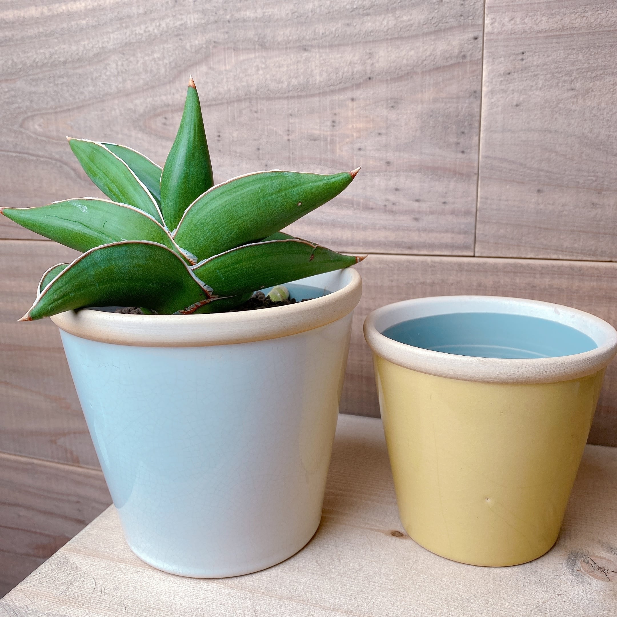 落ち着いた色味のシンプルな陶器鉢を合わせました